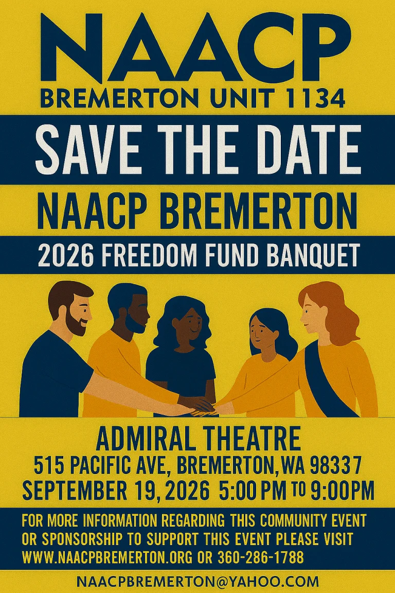 📅 Date: Saturday, September 19, 2026 📍 Location: Admiral Theatre, 515 Pacific Ave, Bremerton, WA 98337 Mark your calendars for the NAACP Bremerton Unit 1134’s 2026 Freedom Fund Banquet. As